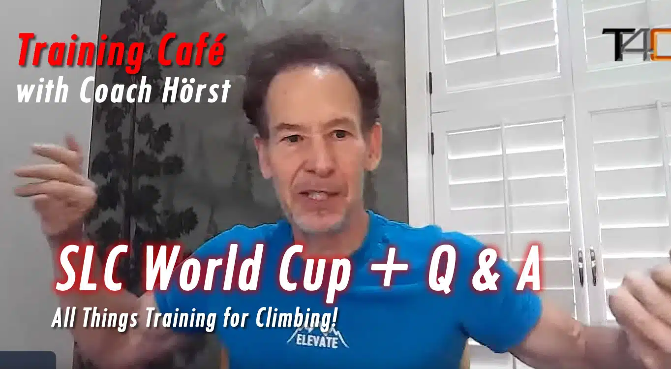 In this episode, Coach Hörst reflects on the last two weekends of World Cup competition at Salt Lake City. Eric answers a wide range of training topics, including what to do about occasional finger soreness after climbing, controlling your self-talk, when to start taking supplements, scheduling weekly and annual training, and more!